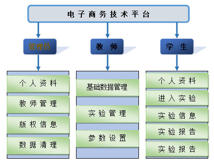 電子(zi)商務(wu)(wu)技術平臺分為管(guan)理員(yuan)、教(jiao)師和學(xue)生(sheng)(sheng)三個角(jiao)色(se),每個角(jiao)色(se)都有自己(ji)特有的(de)功能。電子(zi)商務(wu)(wu)技術平臺包(bao)括了數(shu)(shu)據管(guan)理、WEB服務(wu)(wu)器安(an)裝(zhuang)與(yu)配置、業務(wu)(wu)流程分析(xi)設(she)計(ji)、局域網搭(da)建、客戶與(yu)服務(wu)(wu)端應(ying)用開發、網站構架設(she)計(ji)、Web Service應(ying)用 、數(shu)(shu)據建模、B2B平臺會(hui)員(yuan)系統設(she)計(ji)和網站性能分析(xi)十個實(shi)驗課程。讓學(xue)生(sheng)(sheng)通過實(shi)驗的(de)形式來(lai)鞏固知識(shi)(shi)、理解知識(shi)(shi)和綜(zong)合運(yun)用知識(shi)(shi),教(jiao)師也可以擺(bai)脫傳統的(de)教(jiao)學(xue)方法(fa)(fa),把枯(ku)燥的(de)知識(shi)(shi)同實(shi)踐相結合,還(huan)可以通過學(xue)生(sheng)(sheng)的(de)操作對學(xue)生(sheng)(sheng)的(de)知識(shi)(shi)能力(li)進行考評(ping),并可以此(ci)為依據調(diao)整教(jiao)學(xue)方式方法(fa)(fa)。
